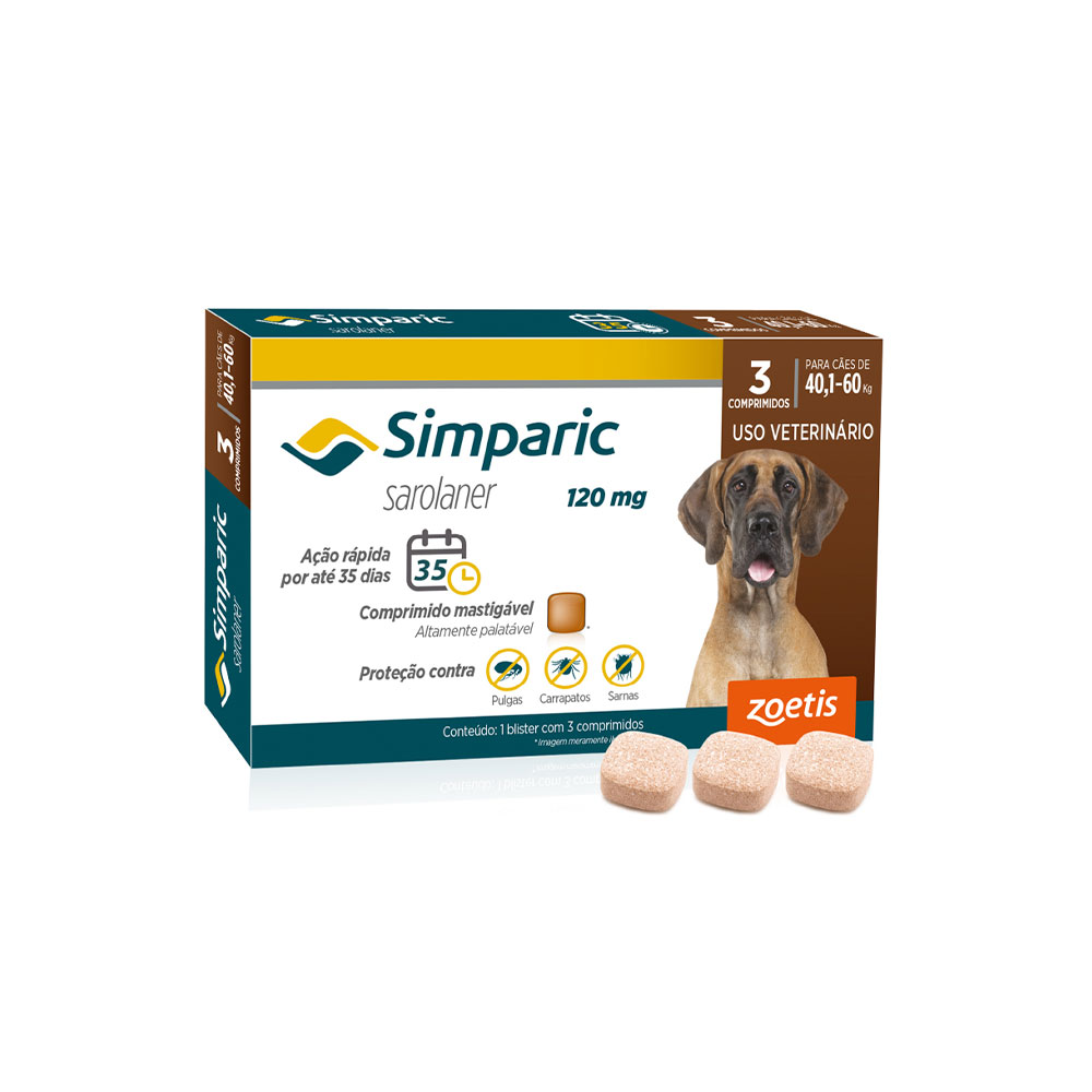 Antipulgas Simparic 120 mg para cães 40,1 a 60 kg - Zoetis