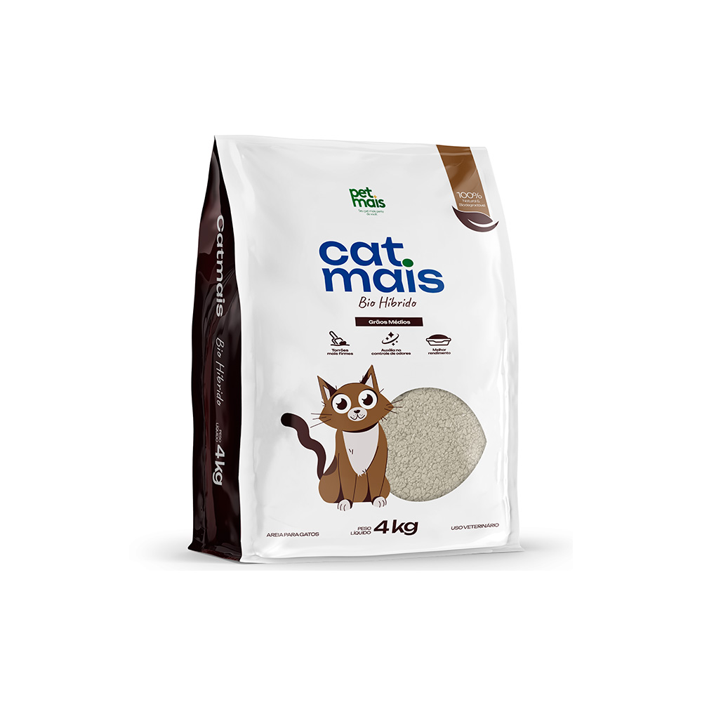 Areia Higiênica Catmais Bio Híbrido Grãos Médios para Gatos 4 kg