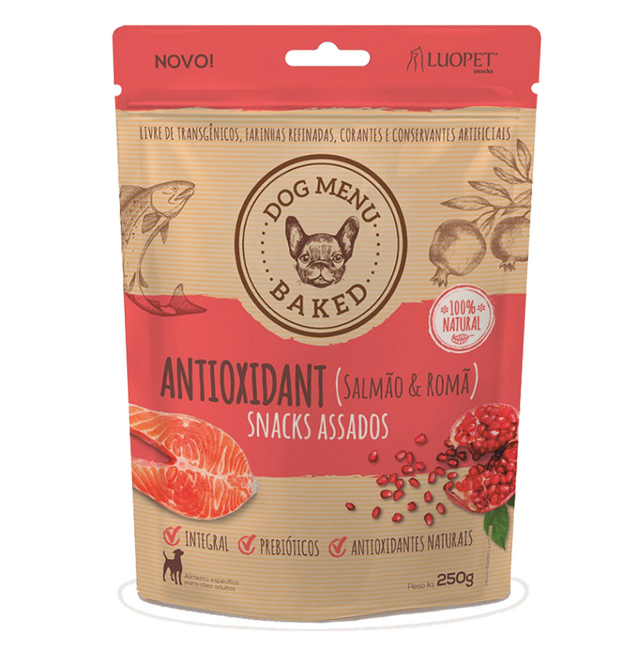 O Biscoito LuoPet Antioxidant é especial para cachorros! Ele é livre de transgênicos, feito com farinhas refinadas e 100% natural. Esse é um biscoito próprio para cachorros adultos de pequeno, médio e grande porte. São 250 g de puro sabor de salmão e romã!