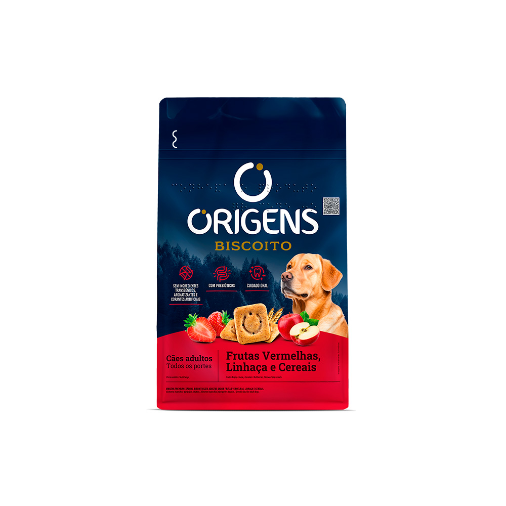 Biscoito Origens para Cães Adultos de Porte Médio e Grande Sabor Frutas Vermelhas, Linhaça e Cereais 400 g