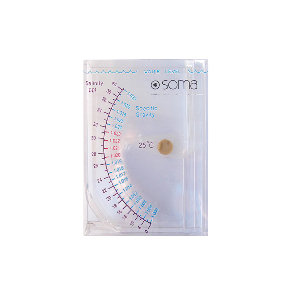 O densímetro Soma Salinity Tool é destinado para as medições de salinidade entre 0 e 40 ppt, e de gravidade específica entre 1000 a 1030. Fique de olho no ponteiro e nas marcações do equipamento para que a conferência mostre os resultados precisos.