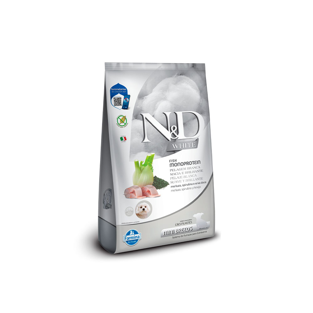 N&D White para Cães Filhotes de Raças Mini e Pequenas Sabor Merluza, Spirulina e Erva Doce 1,5 Kg