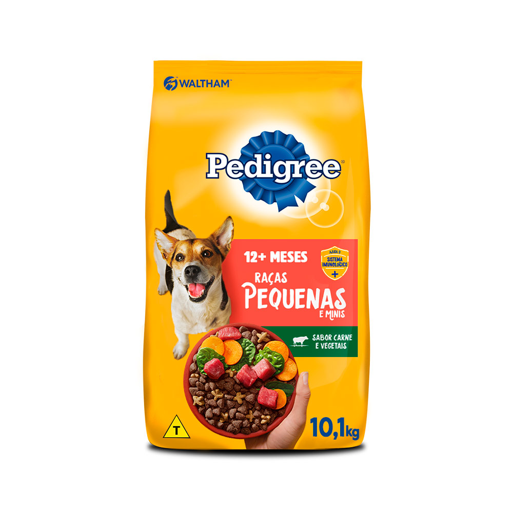 Os cachorros de raças pequenas (<10 kg) têm um metabolismo mais acelerado do que cachorros de raças grandes, por isso precisam de um alimento com maior quantidade de energia para desfrutar de uma saúde ativa. Além disso, têm mais chances de desenvolverem doenças bucais, por isso PEDIGREE® Raças Pequenas tem grãos que ajudam a reduzir a formação de tártaro e a manter dentes e gengivas saudáveis. PEDIGREE® oferece a nutrição profissional que seu cão necessita para estar saudável em cada etapa de sua vida. As receitas de PEDIGREE® são desenvolvidas com base na ciência do Centro de Pesquisas WALTHAM, a maior autoridade mundial no cuidado e nutrição de animais de estimação. www.waltham.com “Cada vez que você compra PEDIGREE®, nós doamos parte* da renda para ajudar cães abandonados a encontrar lares felizes." Conheça o programa em nossas redes sociais: (ícone do Facebook)/PedigreeBR (ícone do Twitter)/PedigreeBR (ícone do Instagram)/PedigreeBR *O valor total a ser doado para instituições no Brasil será de, no mínimo, R$250.000 e, no máximo, de R$1.000.000. PEDIGREE® se reserva o direito de selecionar as instituições a serem beneficiadas.