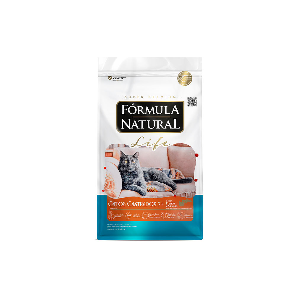 Ração Fórmula Natural Life para Gatos Castrados 7+ Sabor Frango e Salmão