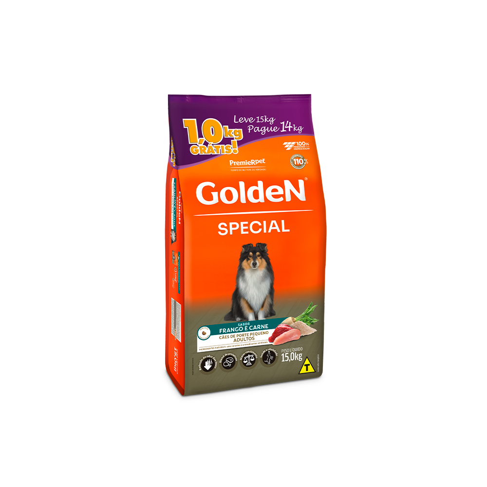 Ração Golden Special para Cães Adultos de Porte Pequeno Sabor Frango e Carne