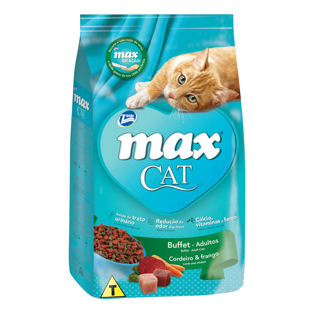 A Max Cat é uma das linhas da Total Alimentos, que atua no segmento desde 1974. É 100% brasileira e está presente em cinco continentes. Além de ter um compromisso com a ética, a empresa também se preocupa com a sustentabilidade. Se preocupa em oferecer ração de gato e cão completa e de qualidade.