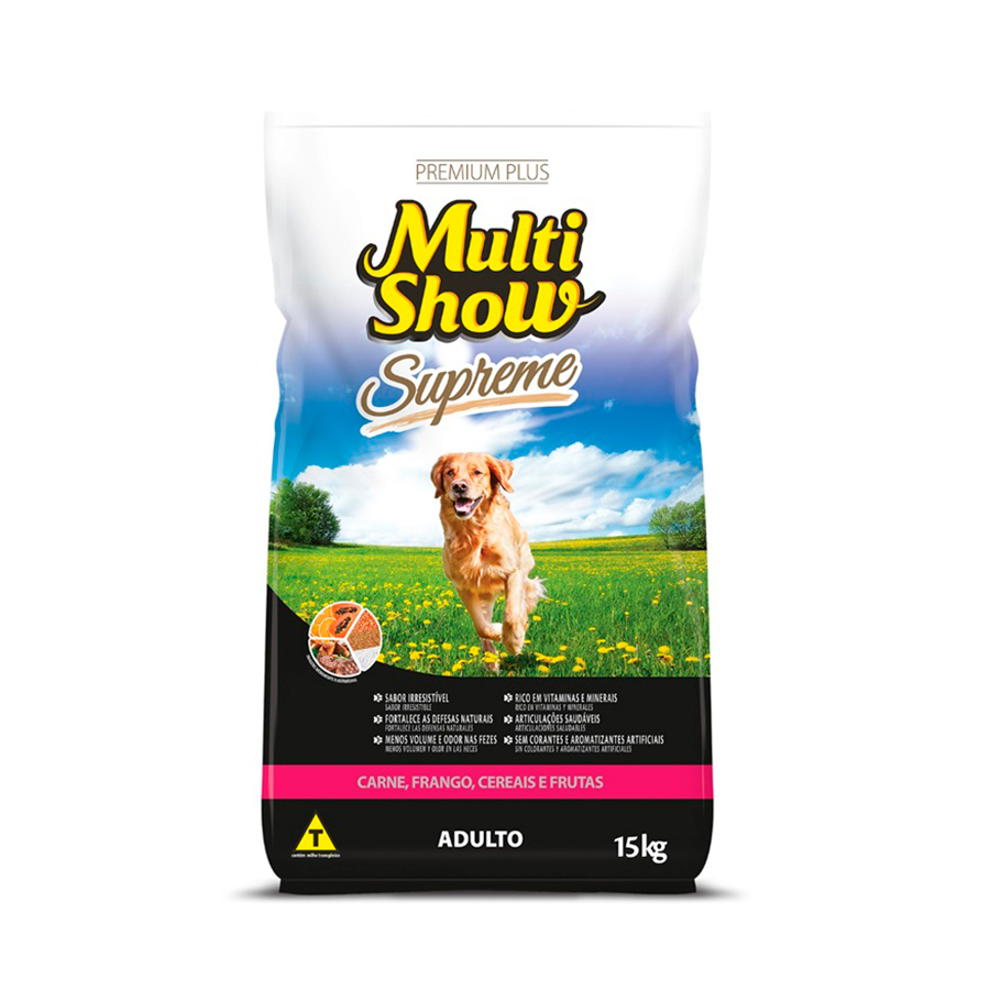 Ração Multi Show Supreme para Cães Adultos Sabor Carne, Frango, Cereais e Frutas 15kg