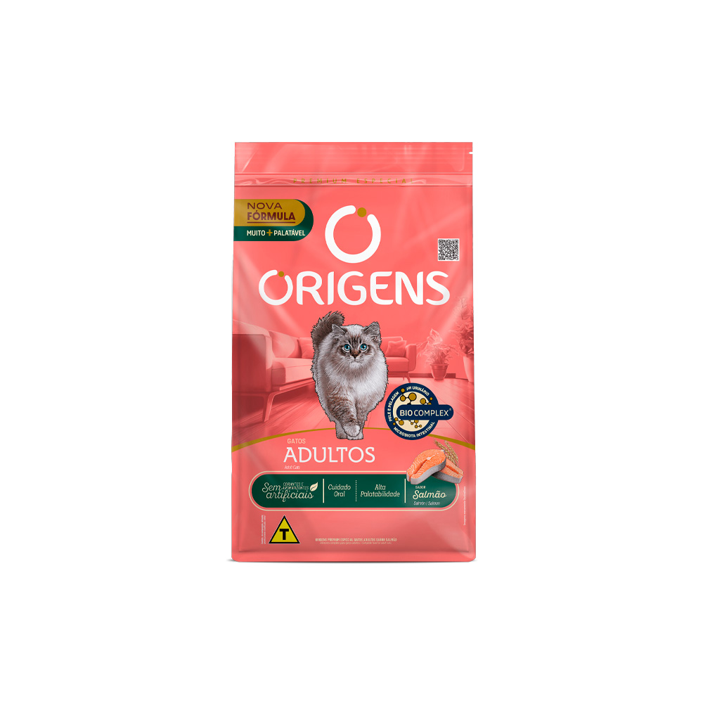 Farinha de vísceras de aves, farinha de peixe, milho moído*, proteína isolada de suíno (farinha de torresmo), farelo de glúten de milho-60*, polpa desidratada de beterraba, farelo de trigo, óleo de aves, hidrolisado de fígado de aves e miúdos de suínos, óleo de salmão, cloreto de sódio, linhaça, parede celular de levedura, inulina, extrato de yucca (0,03%), vitaminas (retinol, colecalciferol, acetato de DL-alfa-tocoferol, menadiona bissulfito de sódio, tiamina, riboflavina, piridoxina, cianocobalamina, cloreto de colina, ácido fólico, niacina, biotina, pantotenato de cálcio), minerais (sulfato de ferro, sulfato de cobre, monóxido de manganês, sulfato de zinco, iodato de cálcio, selenito de sódio, proteinato de zinco, levedura enriquecida com selênio), taurina, ácido fosfórico, ácido cítrico, metionina, ácido propiônico, BHA (Butilhidroxianisol) e BHT (Butilhidroxitolueno). Contém, na composição, alimento geneticamente modificado: milho*. Espécies doadoras de gene: Agrobacterium spp.* **, Bacillus thuringiensis* **, Streptomyces spp.* **.