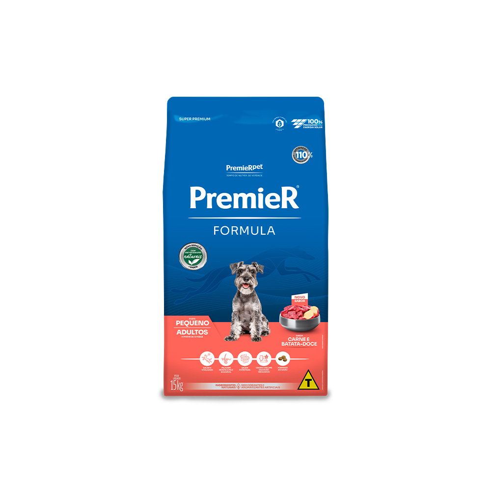 - PremieR Formula Sabor Carne com Batata Doce é um alimento completo, balanceado, rico em vitaminas e nutrientes, destinado a cães adultos de porte pequeno;