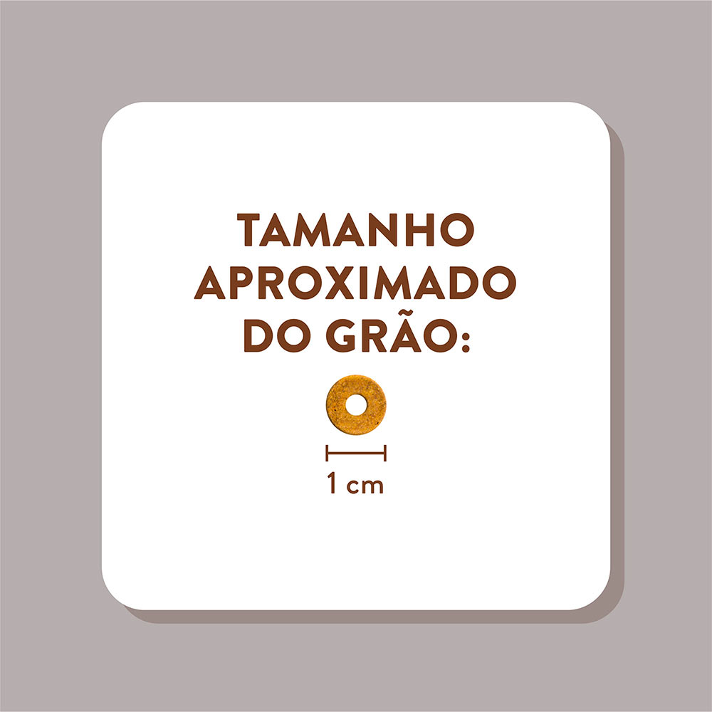 - Composição Farinha de vísceras de frango, proteína isolada de suíno, farinha de salmão, ovo integral desidratado, arroz quebrado, sorgo integral moído, farinha de batata doce, levedura de cerveja, polpa de beterraba (mín. 2,0%), gordura de frango, gordura suína, semente de linhaça, lignocelulose, inulina (FOS) (mín. 0,15%), mananoligossacarídeo (MOS) (mín. 0,1%), cloreto de sódio (sal comum), farinha de algas (DHA), cloreto de potássio, sulfato de glucosamina, sulfato de condroitina, taurina, metionina, hexametafosfato de sódio (mín. 0,3%), zeólita, L-carnitina, extrato de yucca (mín. 0,05%), extrato de maçã (mín. 0,05%), extrato de chá verde (mín. 0,01%), glucanos, extrato de alecrim, tocoferol, ácido propiônico, hidrolisado de fígado de frango e suíno, vitaminas (A, D3, E, B1, B2, B6, B12, K3, C, niacina, biotina, cloreto de colina, ácido fólico, ácido pantotênico), minerais (iodato de cálcio, sulfato de ferro, sulfato de zinco, sulfato de cobre, selenito de sódio, sulfato de manganês), minerais quelatados (manganês, selênio e zinco).