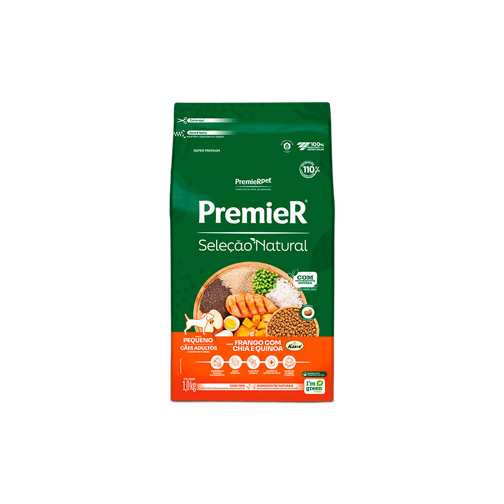 Ração Seleção Natural Premier para Cães Adultos Raças Pequenas sabor Frango com Chia e Quinoa 1kg