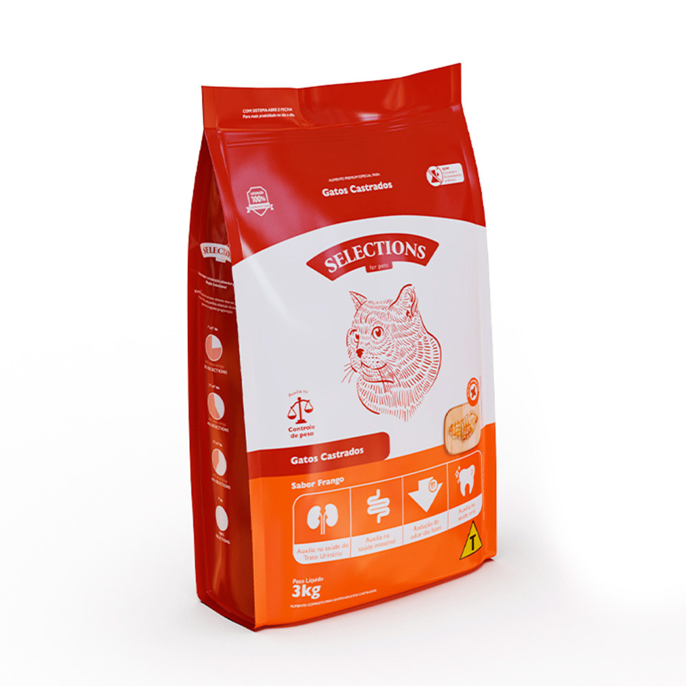 Ração Selections For Pet para Gatos Adultos Castrados Sabor Frango