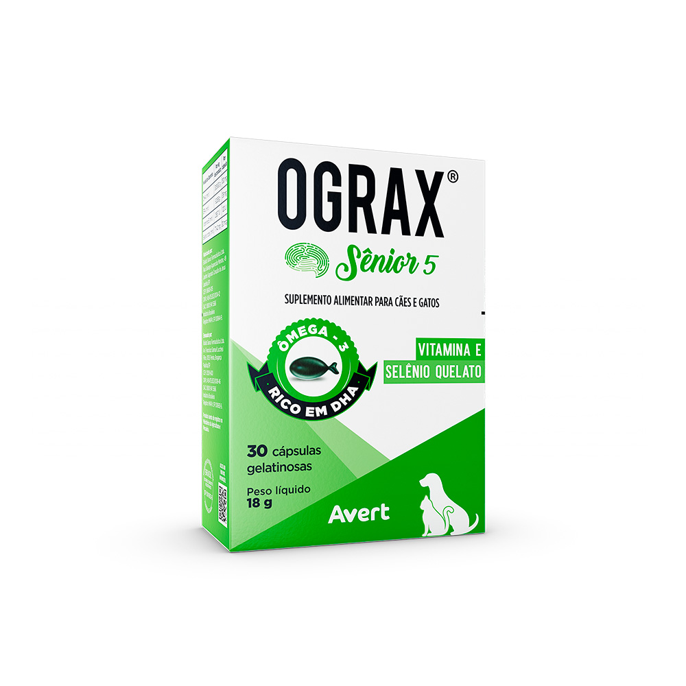 Suplemento Avert Ograx Sênior 5 para Cães e Gatos 30 Cápsulas