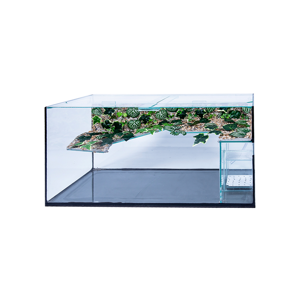 - Indicado para tartarugas; - Terrário com cachoeira e filtro; - Capacidade de 176 litros; - Travas em polipropileno; - Com planta artificial e carcalho; - Disponível em 1 unidade.
